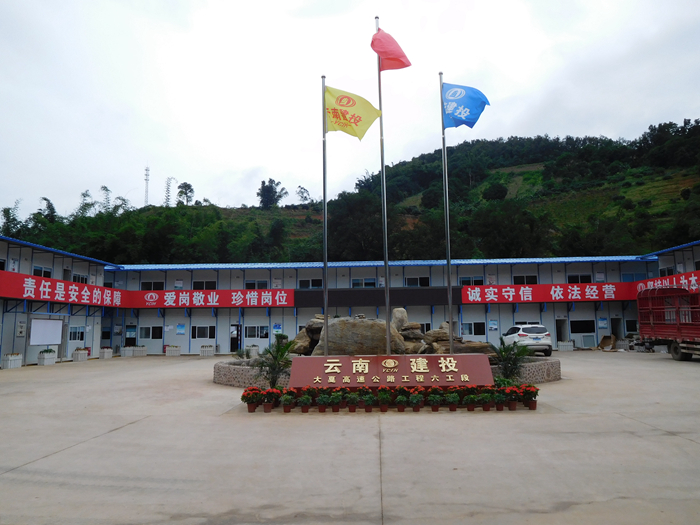 大戛高速公路六工段駐地處及二工區(qū)、三工區(qū)都設(shè)在嘎灑鎮(zhèn)老亞寨,駐地面積18.45畝,各項設(shè)施均嚴(yán)格按照“平安工地”來配置,辦公、生活環(huán)境優(yōu)美、整潔,生活配套設(shè)施齊全。全工段設(shè)3個大型鋼筋加工場,每個工區(qū)1個,搭設(shè)彩鋼瓦棚,棚內(nèi)設(shè)龍門吊,按“集約化、標(biāo)準(zhǔn)化、專業(yè)化”進(jìn)行施工,3個加工場占地24.75畝。項目駐地和臨建設(shè)施的標(biāo)準(zhǔn)化建設(shè),得到了集團(tuán)大戛高速指揮部、公司及其他工段的一致好評。