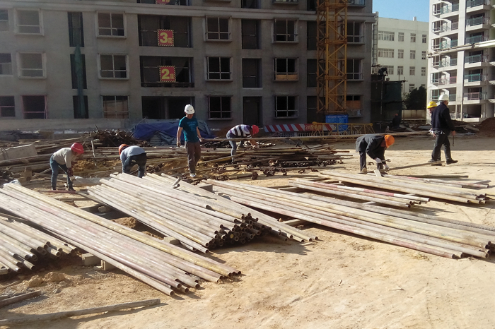 在這太陽(yáng)高照、風(fēng)一吹到處都是塵土飛揚(yáng)的條件下,項(xiàng)目部退休返聘老職工材料主管李壽萍親自對(duì)現(xiàn)場(chǎng)的鋼管、扣件進(jìn)行收撿堆碼。一開(kāi)始只有材料主管李壽萍及材料員劉小明在收撿,不一會(huì)兒項(xiàng)目經(jīng)理李朝松、技術(shù)負(fù)責(zé)人楊濤、主工長(zhǎng)李兆林、工長(zhǎng)劉忠全等管理人員看到這情景也陸陸續(xù)續(xù)加入進(jìn)來(lái)。管理人員們個(gè)個(gè)汗流浹背,人多力量大,不一會(huì)兒的功夫現(xiàn)場(chǎng)的周轉(zhuǎn)材料就堆碼完成。