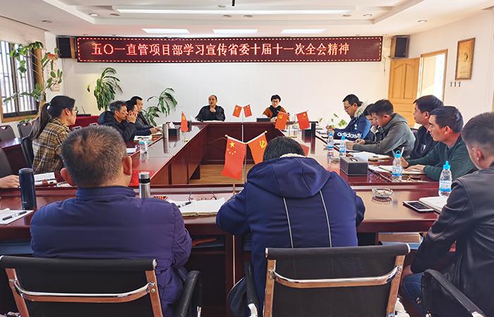 1月25日,五〇一直管項目部在直管部會議室組織學(xué)習(xí)省委十屆十一次全會精神,直管部全體班子成員、科室負(fù)責(zé)人、項目經(jīng)理共計20人參加。會議由黨支部書記王敏主持。