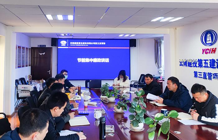 春節(jié)將至,為進(jìn)一步嚴(yán)明各項(xiàng)紀(jì)律,營(yíng)造節(jié)日期間風(fēng)清氣正的氛圍,1月17日上午,第三直管項(xiàng)目部黨支部開展節(jié)前黨風(fēng)廉政建設(shè)專題會(huì),直管部在昆班子成員、項(xiàng)目負(fù)責(zé)人、科室負(fù)責(zé)人參加會(huì)議。