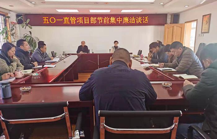 1月25日下午,五〇一直管項目部開展春節(jié)前集中廉潔談話,會議由黨支部書記王敏主持,直管部班子成員、科室負(fù)責(zé)人及項目經(jīng)理參會。