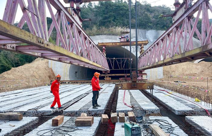 2月10日,路基、橋梁各施工點作業(yè)人員陸續(xù)返崗,防疫措施、安全教育、技術交底等工作有序進行,項目部快馬加鞭在短時間內(nèi)完成便道保通、現(xiàn)場各施工點材料盤點、安全隱患檢查等工作,立即組織人員、機械進場,于2月17日完成玉屏村1號大橋剩余35片T梁吊裝工序,至此順利完成標段內(nèi)全部T梁吊裝工作,打響復工“第一槍”。