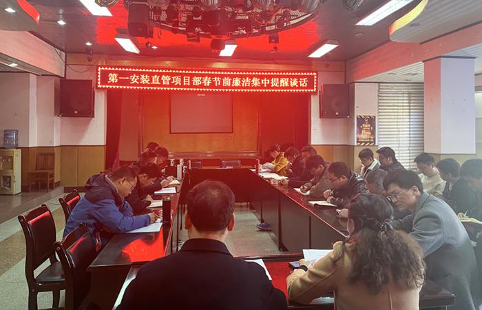 2月4日下午,第一安裝直管項(xiàng)目部黨支部在直管部會議室開展春節(jié)前廉潔提醒談話。直管部領(lǐng)導(dǎo)班子、二線關(guān)鍵崗位人員、項(xiàng)目經(jīng)理共計20人參會。