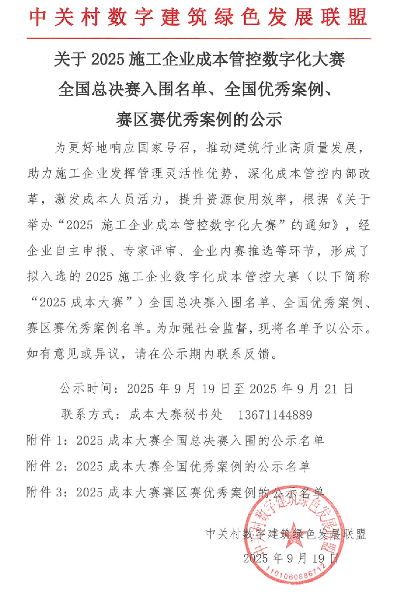 近日,2025施工企業(yè)成本管控數(shù)字化大賽已圓滿結(jié)束,公司原第四直管部負責(zé)施工的中國(勐臘)東盟教育培訓(xùn)中心建設(shè)項目榮獲“全國優(yōu)秀案例”,第九直管部負責(zé)施工的五華區(qū)右營村“城中村”改造項目(二期)C片區(qū)A7、A8和WH-SZ2-B3-01-05地塊新建中學(xué)項目設(shè)計施工總承包項目榮獲“云南賽區(qū)優(yōu)秀案例”。