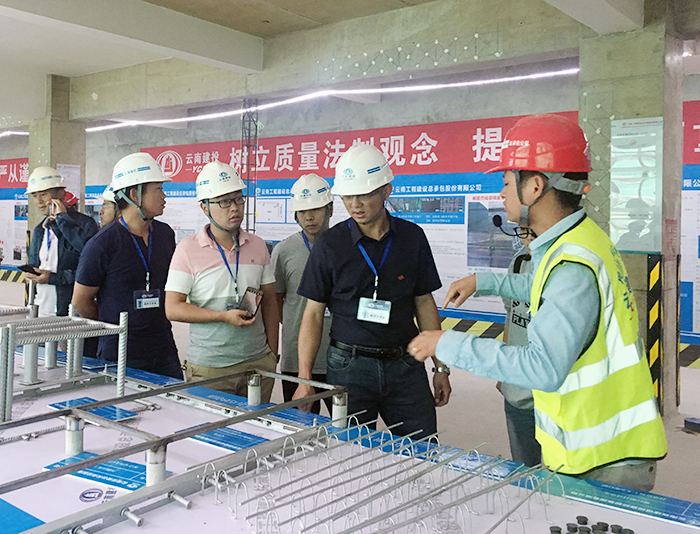 重溫入黨誓詞后,五〇四黨支部聯(lián)合五〇七、安二直管部鎮(zhèn)雄縣第二人民醫(yī)院項(xiàng)目部管理人員前往“云南省質(zhì)量技術(shù)監(jiān)督綜合技術(shù)檢驗(yàn)檢測基地工程項(xiàng)目”進(jìn)行參觀和學(xué)習(xí),在項(xiàng)目講解員的帶領(lǐng)下,大家對(duì)項(xiàng)目安全教育體驗(yàn)館、“四保一樹一控”走廊、樣板展示區(qū)、宣傳學(xué)習(xí)走廊、黨建活動(dòng)室等區(qū)域進(jìn)行了參觀和學(xué)習(xí),深入學(xué)他人之長,補(bǔ)自身不足。