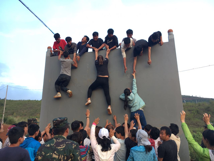 路橋一部:“擼起袖子加油干,勇往直前闖天涯,我們是戰(zhàn)狼隊……”近期,路橋一部在一線項目分三批開展拓展訓(xùn)練,哨關(guān)項目、香麗項目、二線部門共100人參加了活動。在拓展訓(xùn)練中,全體員工被分為紅、藍兩隊,大家在20分鐘內(nèi)選酋長、選助理、選壯丁、編隊訓(xùn)、唱隊歌、跳隊舞,兩隊隊員高呼口號,并完成了“破冰建隊、信任背摔、穿越電網(wǎng)、愚公移山、流程管理、畢業(yè)墻”等一系列拓展項目。