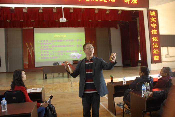 朱景忠結(jié)合黨中央關(guān)于加強(qiáng)家風(fēng)建設(shè)的精神,用通俗易懂、幽默風(fēng)趣的語(yǔ)言,串起了從古到今、從普通人到名人的良好家訓(xùn)、優(yōu)良家風(fēng),對(duì)社會(huì)風(fēng)氣和社會(huì)核心價(jià)值觀的影響,為退休職工講了一堂聲情并茂的課。家風(fēng)正,國(guó)風(fēng)清,家風(fēng)建設(shè)是推進(jìn)黨風(fēng)廉政建設(shè)的重要抓手。講座氣氛在朱景忠老師宣傳楊善洲先進(jìn)事跡的快板書(shū)中進(jìn)入高潮。