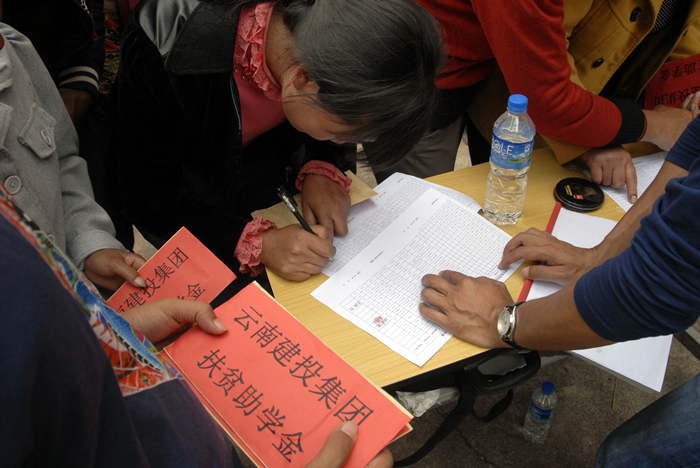 活動(dòng)中,集團(tuán)對兩個(gè)掛聯(lián)村建檔立卡的貧困戶中今年考起高中、大學(xué)及在讀的高中、大學(xué)生(含中專、大專)進(jìn)行了資助,扶貧助學(xué)金近八萬元。之后,施文鐘對扶貧點(diǎn)的村組公路、“德緣橋”、貧困戶危房改造、拆除重建、異地搬遷等基礎(chǔ)設(shè)施建設(shè)工程進(jìn)行了現(xiàn)場走訪調(diào)研。自2015年3月集團(tuán)到宣威市得祿鄉(xiāng)開展駐村幫扶工作以來,公司積極響應(yīng),成立“轉(zhuǎn)走訪”工作小組深入掛鉤點(diǎn)進(jìn)行入戶調(diào)查、實(shí)地查看,并派工作人員長期駐點(diǎn)開展精準(zhǔn)扶貧的相關(guān)工作。