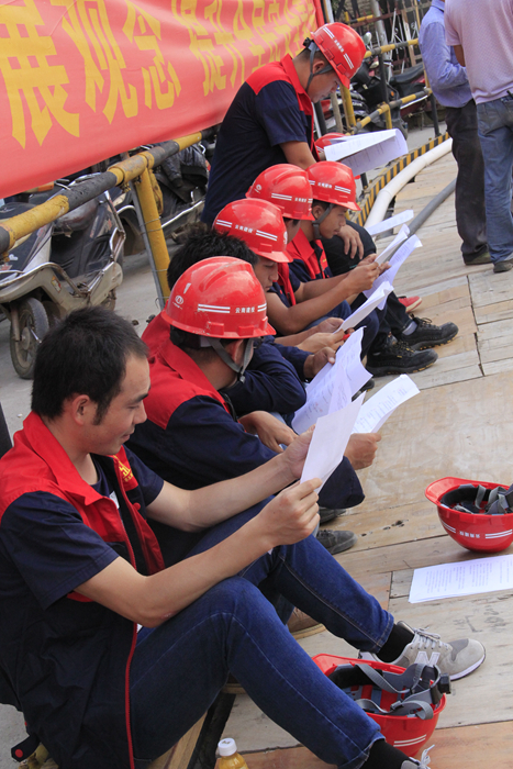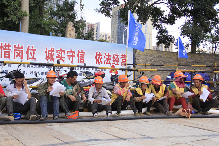 海源財(cái)富中心項(xiàng)目部采用競賽方式,以班組為團(tuán)隊(duì),設(shè)有4個(gè)評委,設(shè)置一、二、三等獎,共組織了管理人員、木工班組、混凝土班組、鋼筋班組、架子工班組、材料工等6個(gè)團(tuán)隊(duì)參加,每個(gè)團(tuán)隊(duì)15人;天威云變項(xiàng)目部則采取有獎問答方式舉行。兩個(gè)項(xiàng)目部共計(jì)146人賽,共發(fā)放了280份獎品。活動現(xiàn)場氣氛活躍,反響熱烈,為直管部進(jìn)一步推動“普及法律知識、強(qiáng)化維權(quán)意識,促進(jìn)和諧發(fā)展”及進(jìn)一步提升施工現(xiàn)場人員的安全素質(zhì),營造良好的安全發(fā)展環(huán)境氛圍提供正能量。