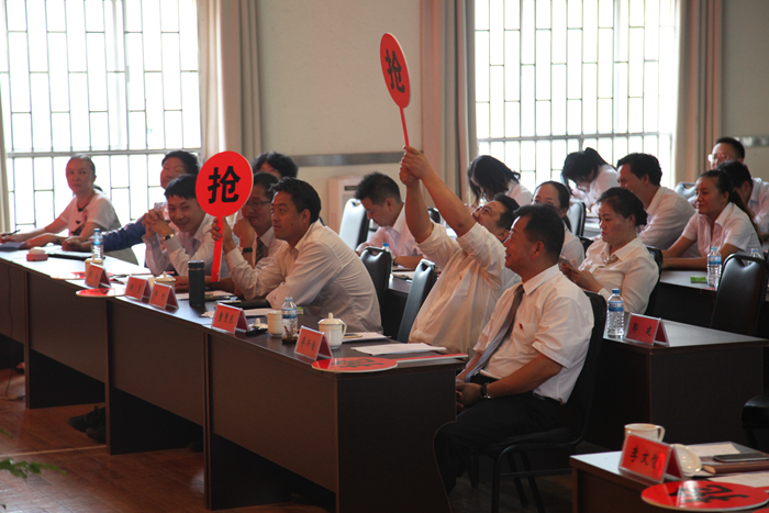 經(jīng)過初賽的角逐,進入決賽的共有六支代表隊,分別是:第五直管部、公司機關、五〇五直管部、五〇二直管部、租賃中心、第三直管部代表隊。決賽環(huán)節(jié)分為指定選手必答題、自選選手必答題、小組風險題、搶答風險題,決賽還特別加入了團隊鼓勵題,由公司領導進行搶答,為制定的代表隊進行加分,極大的鼓舞了各代表隊的士氣。