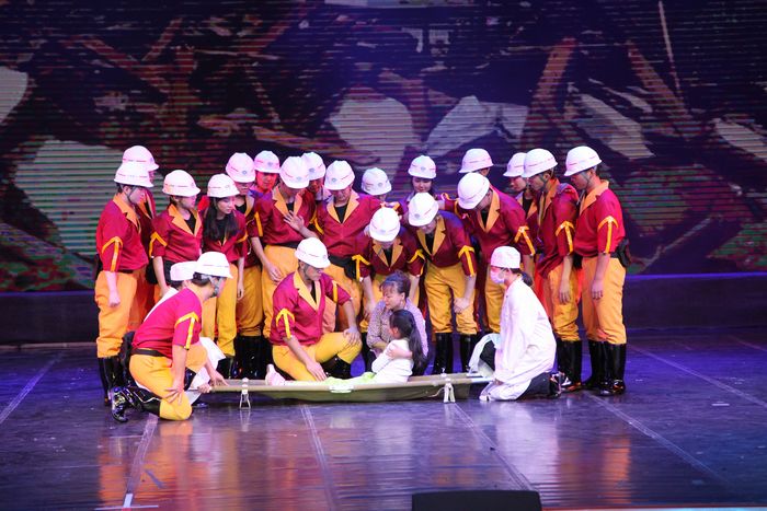 云南建工集團(tuán)受邀參演的音詩畫節(jié)目《感恩魯?shù)?我在現(xiàn)場》由公司編排,公司職工參與。通過歌舞的形式,以建工集團(tuán)一線職工在抗震救災(zāi)現(xiàn)場全力參與救援的感人事跡和場景,生動展現(xiàn)和反映了云南建工在第一時(shí)間趕赴災(zāi)區(qū)參與抗震救災(zāi),并在災(zāi)后恢復(fù)重建工作中的無私擔(dān)當(dāng)。節(jié)目劇情高潮迭起,幾度感人淚下,觀眾們掌聲雷動。