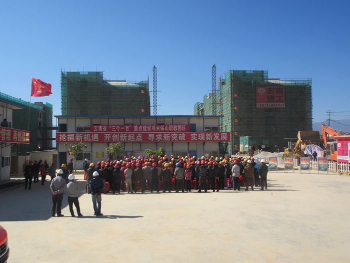 2015年1月27日下午,云南省總工會副主席潘紅偉、云南省發(fā)改委重點(diǎn)處副處長王明生、省總工會生產(chǎn)保護(hù)部副部長焦志剛等領(lǐng)導(dǎo)帶隊(duì)的慰問組,在保山市總工會主席、市人大常委會副主任陳自鋒、市總工會黨組書記常務(wù)副主席李發(fā)榮、市發(fā)改委副主任魯?shù)莱?、保山市教育局等領(lǐng)導(dǎo)陪同下,不辭辛苦,來到保山中等專業(yè)學(xué)校(保山高級技工學(xué)校)異地遷建項(xiàng)目現(xiàn)場進(jìn)行“云南省‘三個(gè)一百’重點(diǎn)建設(shè)項(xiàng)目保山職教園區(qū)”慰問活動。
