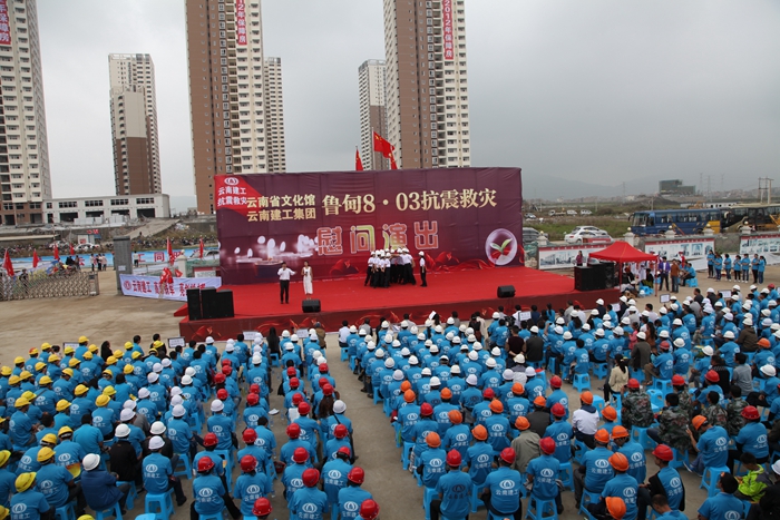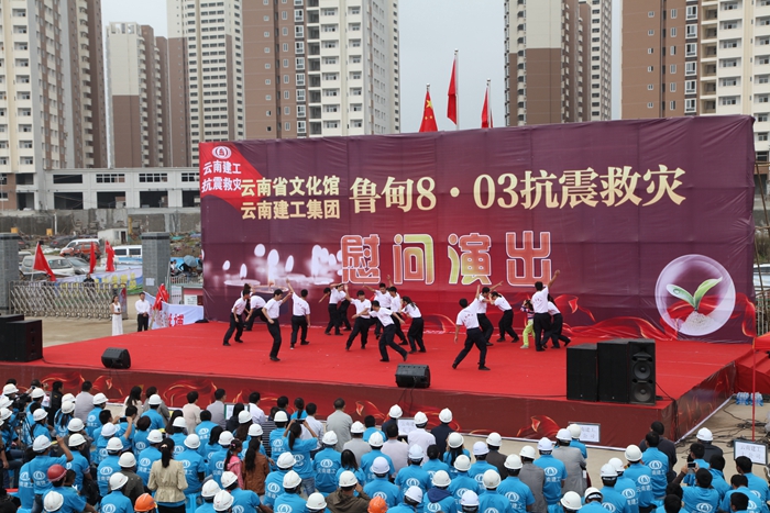 9月20日,集團(tuán)與省文化館在昭通市昭陽區(qū)2012年保障房項(xiàng)目部聯(lián)合舉辦的抗震救災(zāi)文藝演出。慰問演出中,參演節(jié)目精彩紛呈,舞蹈、獨(dú)唱、小品、雜耍等節(jié)目各具特色,彰顯了建工人高原鐵軍的精神。