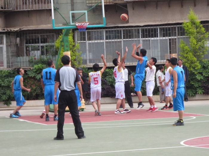 比賽開始,安一部球員一上場(chǎng)就搶到球上籃先得2分,直五部籃球隊(duì)員不甘落后,努力搶球、投籃,雙方你追我趕,比賽緊張而激烈地進(jìn)行。由于直五部的球員剛上場(chǎng)狀態(tài)不佳,因此上半場(chǎng)就落下了十多分,讓安一部一度領(lǐng)先。