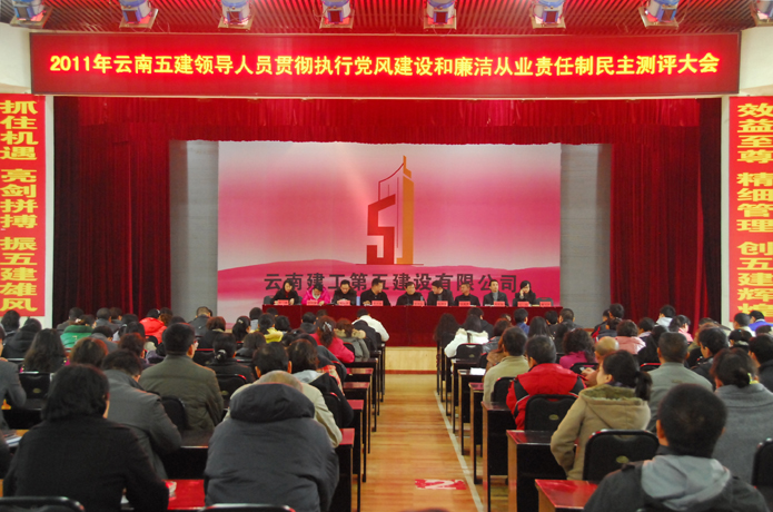 12月2日下午2時,為認(rèn)真貫徹執(zhí)行黨風(fēng)建設(shè),加強(qiáng)群眾監(jiān)督,公司在大禮堂召開了2011年云南五建黨政領(lǐng)導(dǎo)班子成員貫徹執(zhí)行黨風(fēng)建設(shè)和領(lǐng)導(dǎo)人員廉潔從業(yè)責(zé)任制民主測評大會,開展民主測評活動。公司董事長楊福和出席會議并發(fā)言。公司領(lǐng)導(dǎo)班子成員及機(jī)關(guān)支部所屬員工200余人參加。