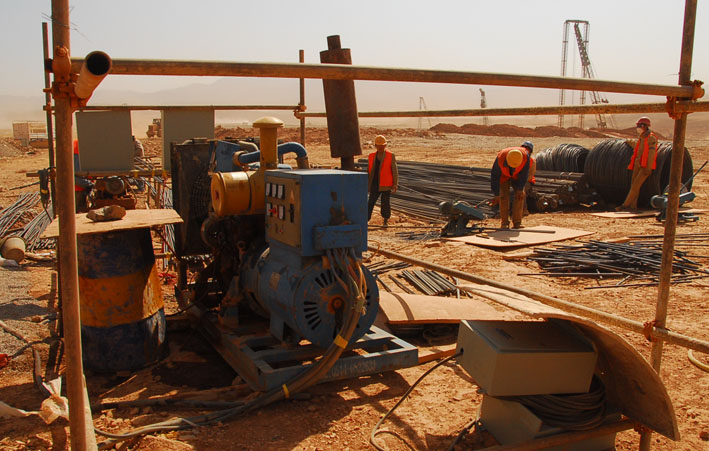 為進(jìn)一步搞好A2標(biāo)段的950多棵人工挖孔樁施工,公司組建了由公司直接管理的新機(jī)場(chǎng)工程項(xiàng)目部。工地上沒有水,施工用水和生活用水就購(gòu)買從7-8公里以外拉來的水,項(xiàng)目部在各個(gè)施工點(diǎn)搭建了十幾個(gè)臨時(shí)水池蓄水,以保證施工正常進(jìn)行;工地上沒有電,為了保證施工用電,工地上自備了多臺(tái)柴油發(fā)電機(jī)發(fā)電 ;春節(jié)后進(jìn)入昆明的多風(fēng)季節(jié),久旱無雨的新機(jī)場(chǎng)工地上,到處塵土飛揚(yáng)。項(xiàng)目部為每一個(gè)人購(gòu)置了口罩,不管工地上氣溫多高,都帶著口罩作業(yè),全體人員天天都灰頭土臉地奮戰(zhàn)在工地上。