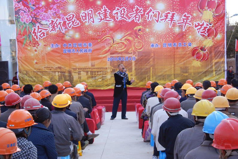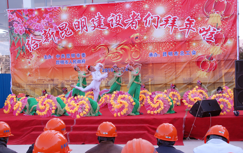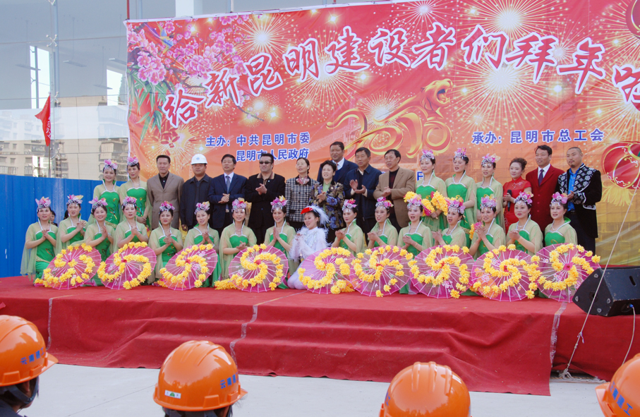 2月4日上午,受昆明市委、市政府委托,昆明市總工會主席楊麗等領導同志率團到云南建工第五建設有限公司昆明工人文化宮建設工地,給包括農(nóng)民工在內的新昆明建設者拜年,給建設者送來新春的祝福和溫暖的禮品。楊麗主席和工會干部以及昆明市楓葉職工藝術團的演員們分別獻上精彩的歌舞。