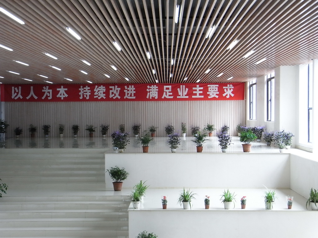 該工程位于呈貢新城東南部雨花片區(qū),建筑面積16328M2,為局部地下一層,地上四層鋼筋砼結(jié)構(gòu),是師大新校區(qū)的行政辦公地點。該工程主體完工后,為了達(dá)到一定的效果,甲方對裝修方案和標(biāo)準(zhǔn)進(jìn)行了多次調(diào)整,工程建筑風(fēng)格、最終裝修效果簡樸大方、端莊穩(wěn)重。驗收會上,校方、城投公司、監(jiān)理方、省質(zhì)監(jiān)站、設(shè)計方、地勘等單位對該工程做了肯定評價。為配合驗收工作,體現(xiàn)該辦公樓的建筑特點,五0五直管部對辦公樓內(nèi)部環(huán)境做了綠化裝飾,使人一進(jìn)入新大樓就產(chǎn)生賞心悅目的感覺,強(qiáng)化了建筑視覺效果。