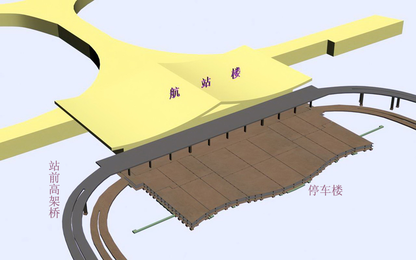 機場航站樓前停車樓及站前高架橋示意圖
