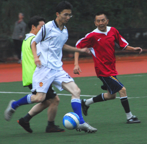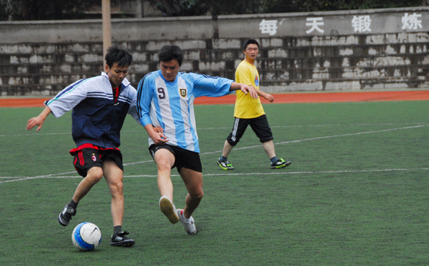 在晚秋的霏霏細(xì)雨中,五建五分公司與公司機(jī)關(guān)于11月4日舉行了一次足球友誼賽,活躍職工業(yè)余文化生活,增進(jìn)友誼。 伍軒 攝影