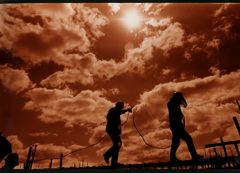 圖為高玉和作品《五公司滾滾紅塵——風中的工地》