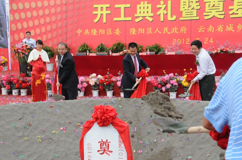 7月24日,保山市隆陽區(qū)2012年保障性住房建設(shè)項(xiàng)目舉行開工奠基儀式,保山市委常委,市政法委書記趙德光,集團(tuán)公司黨委副書記、紀(jì)委書記張戰(zhàn)國,集團(tuán)公司總經(jīng)理助理、城鄉(xiāng)建投公司董事長等領(lǐng)導(dǎo)出席奠基儀式,并共同為項(xiàng)目開工培土奠基。公司董事長楊福和,公司黨委書記、城鄉(xiāng)投保山分公司(指揮部)總經(jīng)理李文智,公司總經(jīng)理魏華等班子成員參加儀式。
