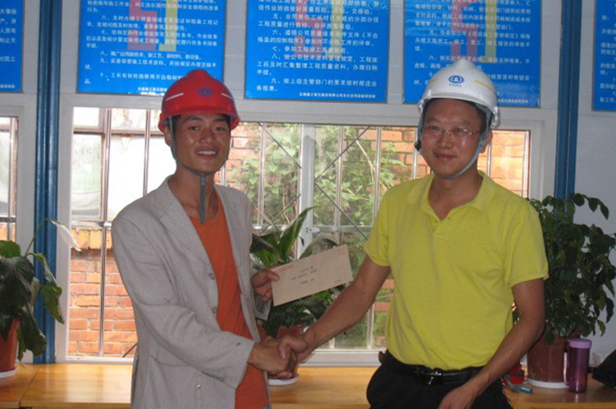 6月25日,第二安裝直管項目部領(lǐng)導(dǎo)楊忠明、徐紅梅、張興祥到工地參加文化空間現(xiàn)場管理本月綜合大檢查。檢查過程中,項目部管理人員和操作班組共同參與,通過檢查照片資料、實地查看,綜合評分,王宗能、李維彪、陳云三個班組的評分均達(dá)到優(yōu)良標(biāo)準(zhǔn),直管部領(lǐng)導(dǎo)給予班組肯定和認(rèn)可,并給他們現(xiàn)場頒發(fā)獎金。勞務(wù)班組對項目部的管理制度非常認(rèn)同,表示會再接再勵干好工作。