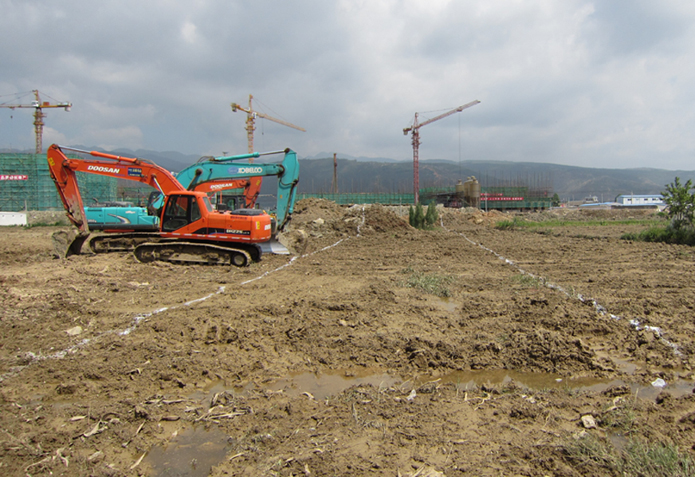 項目部成立后,先后測出1至5號地塊方格網(wǎng),積極組織機械設(shè)備和人員入場,推進幾個地塊的場地平整工作。