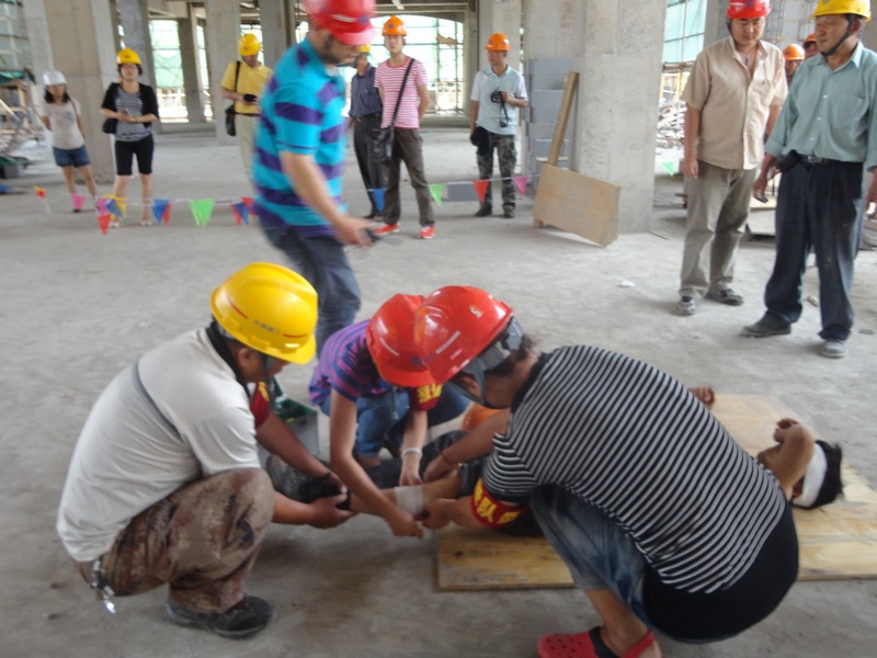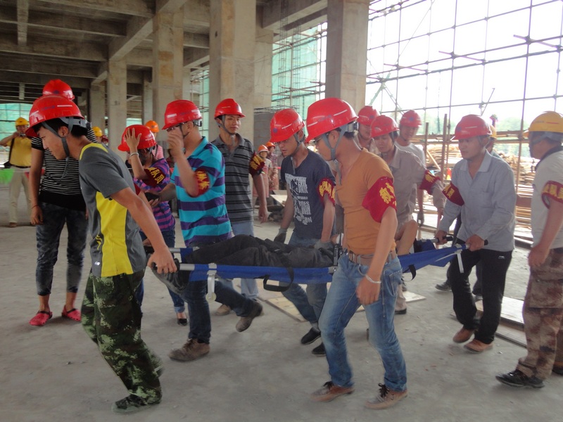 •     2012522下午,昆一中項目部組織了一場模板坍塌應(yīng)急救援模擬演練,項目部管理人員、直管部二線管理人員和昆一中操作班組的人員都參加了此次演練。