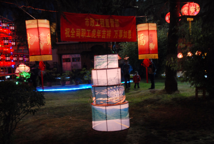 由基層各單位送來(lái)的參展作品異彩紛呈。最醒目的是主席臺(tái)旁的公司五大標(biāo)志性建筑燈箱,新機(jī)場(chǎng)項(xiàng)目的詩(shī)詞是機(jī)場(chǎng)項(xiàng)目部工會(huì)主席楊應(yīng)同志所寫(xiě)的《念奴嬌.新機(jī)場(chǎng)建設(shè)有感》,表現(xiàn)了奮斗在工地上職工們的朝氣蓬勃;506分公司作品是他們自行設(shè)計(jì)的圖案,開(kāi)頭是4,后面9個(gè)0,象征著公司今年要完成40個(gè)億的經(jīng)營(yíng)任務(wù);門(mén)上的兩個(gè)工藝精美的古典燈籠結(jié)合我們501分公司的一幢幢現(xiàn)代建筑,古樸中透著現(xiàn)代的氣息;第一個(gè)獲得魯班金像獎(jiǎng)的505直管項(xiàng)目部的送來(lái)的作品立體又質(zhì)感;海天一色中揚(yáng)帆的船寓意著家福人和,菊香明月,五建一帆風(fēng)順……各式各樣的彩燈都表達(dá)著對(duì)五建公司的美好祝福。兩個(gè)集體趣味項(xiàng)目超級(jí)大腳板和抬氣球,分別由新機(jī)場(chǎng)項(xiàng)目部、景秀西苑項(xiàng)目部、502直管項(xiàng)目部和507分公司派出的代表隊(duì)參加,團(tuán)隊(duì)的力量一目了然。民間藝人表演的《變臉》、《頂碗》和魔術(shù)《飛桌子》以及劃彩船、騎毛驢等傳統(tǒng)項(xiàng)目吸引了眾多的觀(guān)眾。燈謎區(qū)人頭攢動(dòng),同時(shí)進(jìn)行的還有元宵湯圓和冰糖葫蘆大贈(zèng)送;民間藝人現(xiàn)場(chǎng)表演了剪紙、草編、畫(huà)糖畫(huà)、捏面人等節(jié)目,他們的手工作品都現(xiàn)場(chǎng)免費(fèi)贈(zèng)送給大家。