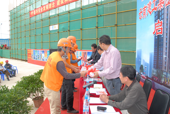 技術支持: 方森科技 2010年8月25日上午,集團公司在五公司第一直管部承建的第三城•丹槿園施工現場召開施工現場班組安全建設啟動儀式現場會。昆明市建筑安全監(jiān)督管理站站長梁少軍,集團公司副總經理楊濤、安全總監(jiān)段益慶、生產安全處主任蘇雄斌,五公司董事長、黨委書記楊福和出席會議。會議由段益慶主持。