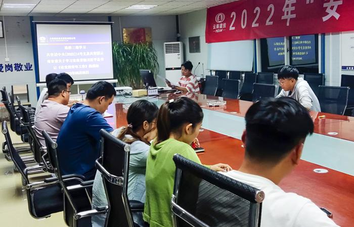 8月5日晚,路橋三部組織全體共青團員及青年職工,在永金高速一分部項目部會議室學習共青團中央[2022]14號文及共青團云南省委關(guān)于學習宣傳貫徹習近平總書記《論黨的青年工作》的通知。會議深刻領(lǐng)悟團中央“深刻認識《論黨的青年工作》的重大意義,深刻領(lǐng)會《論黨的青年工作》的豐富內(nèi)涵,學懂弄通做實《論黨的青年工作》的核心要義”及團省委“深入學習領(lǐng)悟,廣泛宣傳教育,抓好貫徹落實”的文件精神。同時,摘選習近平總…