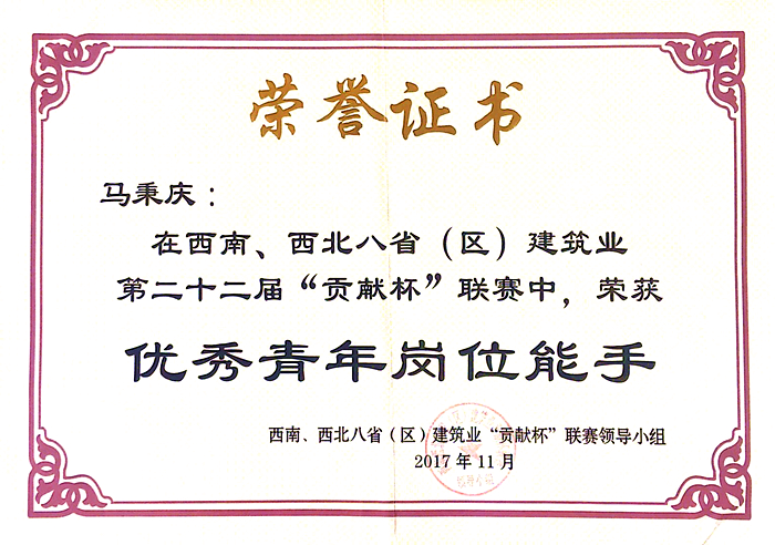 公司職工在西南、西北八省(區(qū))建筑業(yè)“貢獻杯”聯(lián)賽中獲獎