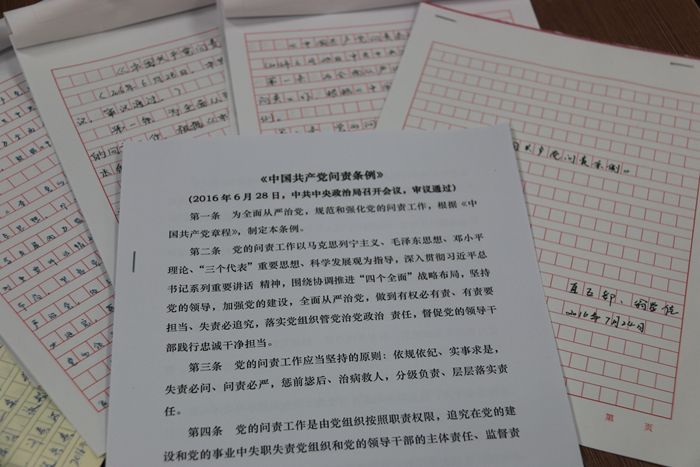 直五部:組織黨員、入黨積極分子抄寫《中國共產(chǎn)黨問責(zé)條例》