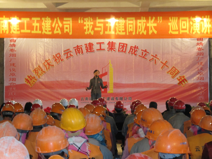2011年3月30日上午十點(diǎn)半,云南五建演講團(tuán)到五0一直管項(xiàng)目部曲靖卷煙廠(chǎng)原煙倉(cāng)庫(kù)和附屬工程項(xiàng)目部,舉行了以“我與五建同成長(zhǎng)”為主題的演講會(huì)。 演講場(chǎng)地在項(xiàng)目部施工現(xiàn)場(chǎng)的1#倉(cāng)庫(kù),橫掛在1#倉(cāng)庫(kù)歡迎演講團(tuán)的標(biāo)語(yǔ)迎風(fēng)飄揚(yáng),通道上、演講臺(tái)擺放的鮮花為現(xiàn)場(chǎng)增添了一些靈氣。走進(jìn)會(huì)場(chǎng),項(xiàng)目部管理人員、監(jiān)理、各操作班組衣著整齊地已經(jīng)坐在臺(tái)下,曲煙建設(shè)方代表到現(xiàn)...