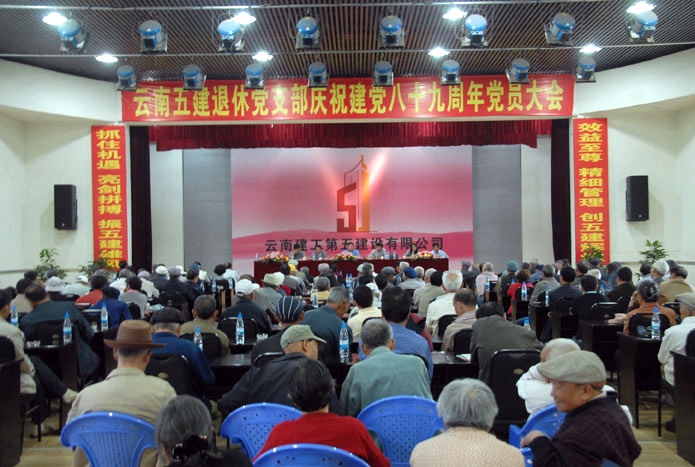 在建黨八十九周年來臨之際,云南五建退休黨支部于2010年6月30日在公司大禮堂隆重召開大會慶?!捌?nbsp;.一”建黨節(jié)。公司董事長、黨委書記楊福和等到會看望了老黨員并作重要講話。 參加大會的退休老黨員有186名,是退休支部到會人數(shù)最多的一次。盡管天下著大雨,大部分老黨員年事已高、行動不便,家離公司又比較遠,但他們?nèi)园磿r趕...