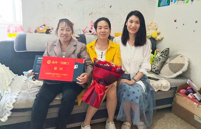 為感謝奮戰(zhàn)在海外項(xiàng)目一線的職工及家屬,4月26日,直六工會主席王倩代表公司、直管部走訪慰問海外職工家屬,為他們送去吸塵器、鮮花等慰問品。受新冠肺炎疫情影響,第六直管項(xiàng)目部援老撾鐵道職業(yè)技術(shù)學(xué)院項(xiàng)目、老撾萬萬高速項(xiàng)目、柬埔寨18007項(xiàng)目的職工們無法按時(shí)休假,不能回來與家人團(tuán)聚,有的職工已經(jīng)接近兩年沒有回家了,一直堅(jiān)守在工作崗位上。在援老撾鐵道職業(yè)技術(shù)學(xué)院項(xiàng)目職工徐章銳和老撾萬萬高速二工區(qū)項(xiàng)目陸禮家…