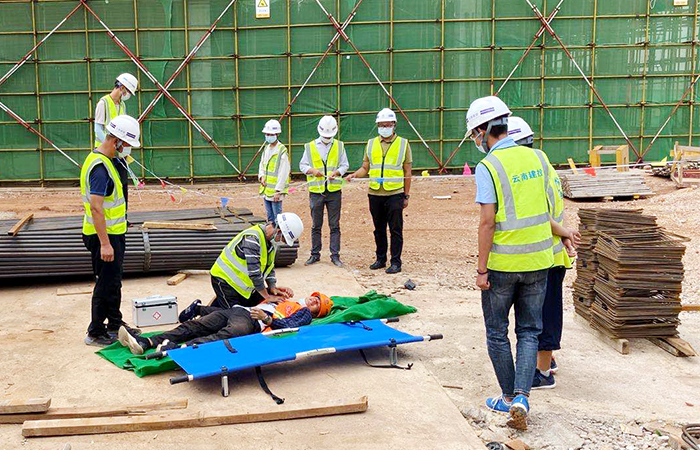 6月24日,第十直管項目部巧家縣移民工程天生梁子安置區(qū)1#地塊、2#地塊及場平項目共同組織開展“高處墜落”事故應急演練活動,項目部全體管理人員及施工班組代表參加活動。 本次預案演練事故背景為外架剪刀撐搭設人員在9棟樓進行外腳手架搭設作業(yè),其中一名工人因未按要求佩戴安全帶,在作業(yè)過程中從4樓跌落至外架底部,造成左小腿骨折,需要做現(xiàn)場安全確認及傷口...
